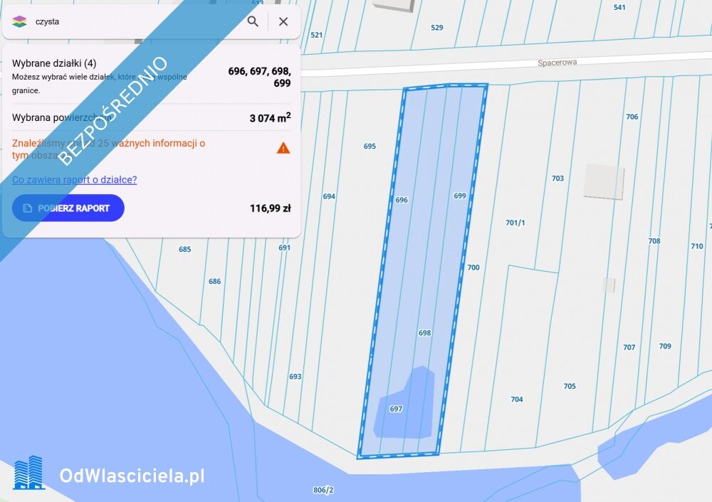 Do sprzedania działka budowlana w miejscowości Czysta o powierzchni 3074 m2.Działka rekreacyjnie zagospodarowana :